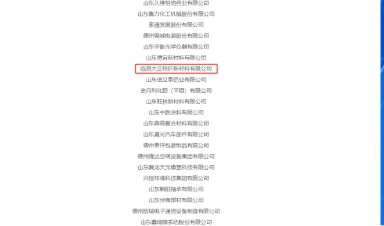 2024年4月30日,德州市工业和信息化局公布2024年拟认定市级“一企一技术”研发中心名单公示,临邑大正特纤新材料有限公司入选。